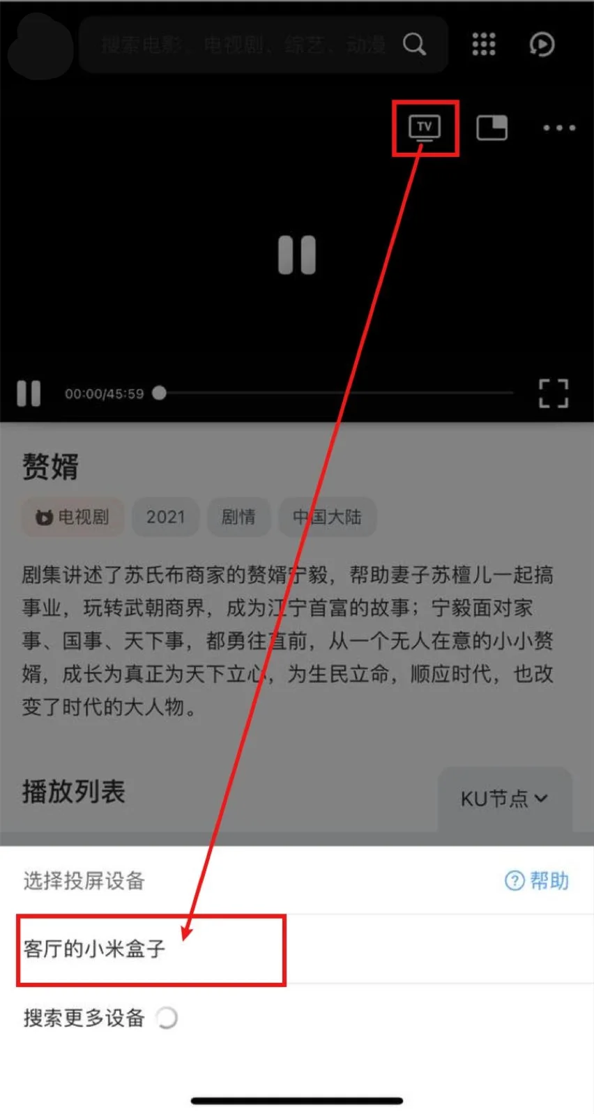 打开QQ浏览器(会接管网页播放器)->打开28短剧->播放视频->选中投屏图标->等待搜寻出智能电视/电视盒子->选中,即可投屏。